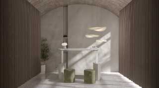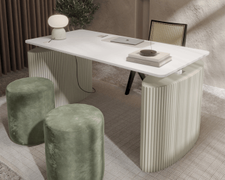 • Fluted MDF wood base with alabaster lacquer