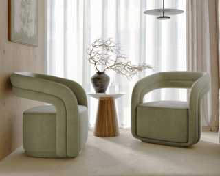 Discover a sense of sophisticated luxury with the sculptural shape of the Mia Lounge Chair. A fresh take on the traditional lounge chair, the softly upholstered curves, and the intricate details of Mia creates a grandiose feel of modern elegance in any space.