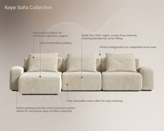 Imbued with a sense of luxury and comfort the Kaye Open End Sofa brings a dream-like feel to any environment. Luxuriously draped in contemporary, plush fabrics, the Kaye serves as the ideal customizable modular sofa to harmonize seamlessly with your unique space. Enjoy our preset configuration or customize your own design by purchasing pieces separately.