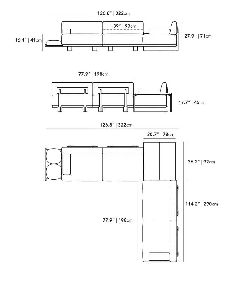 - Includes: 2*Left/Right Arm modules, 2*Armless modules, 2*Side Tables