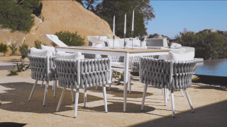 Modern simplicity, with an emphasis on quality materials. The Spencer Dining Table is an entertaining essential. Showcasing a teak wood slat top and durable powder coated aluminum legs, the Spencer is for those who love the details.