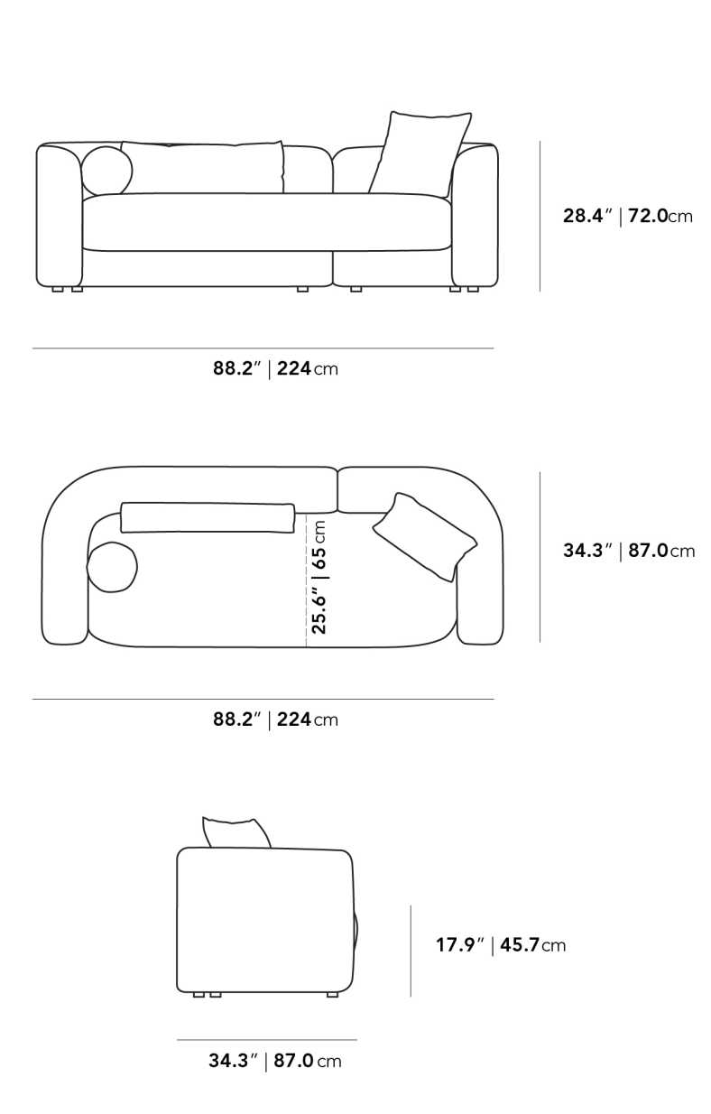 The Bilbao Sofa is a sculptural take on modern comfort. With smooth upholstery and a streamlined silhouette, it offers both presence and ease. Its low profile rests on slender matte black iron legs, grounding the form while maintaining a light, elevated feel. A balance of clean lines and inviting comfort, Bilbao is designed to anchor contemporary living spaces with quiet sophistication.