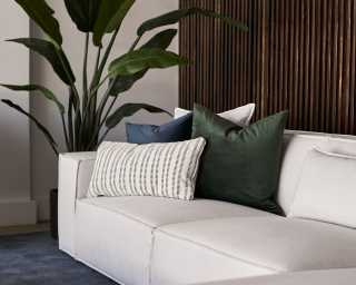 The Porter Sectional is a simple structured sofa with boxy flare and a low-set profile. Square arm rests are made like a side table, while an elevated back rest provides ample lean-back support. High-density foam cushioning is nicely rounded and perfectly firm. Detailed pipe stitching around the edges finishes the eloquent modern design.